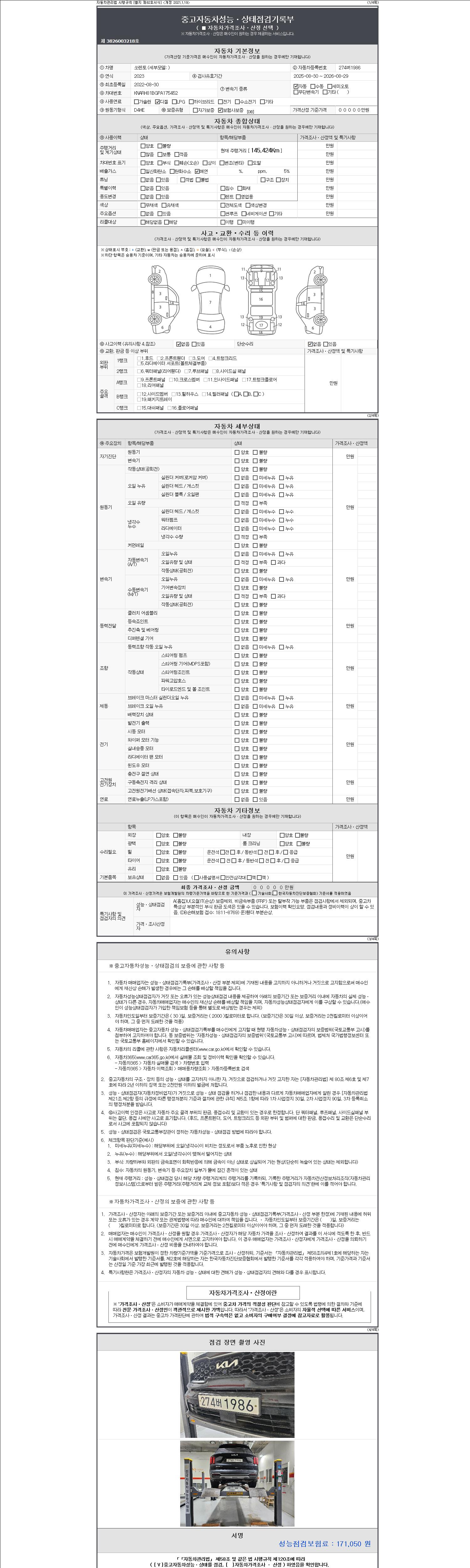 - 2. 차량 등록증이나 성능점검지 등을 상담자에게 요청및 확인하시고 사전에 미리 점검 하시기를 권유드립니다.