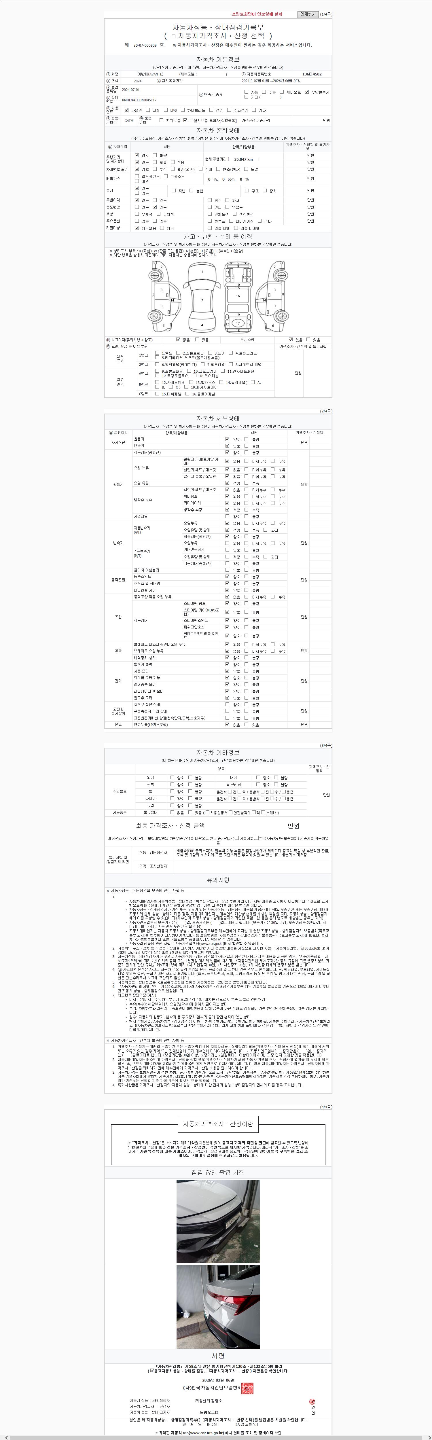 - 2. 차량 등록증이나 성능점검지 등을 상담자에게 요청및 확인하시고 사전에 미리 점검 하시기를 권유드립니다.