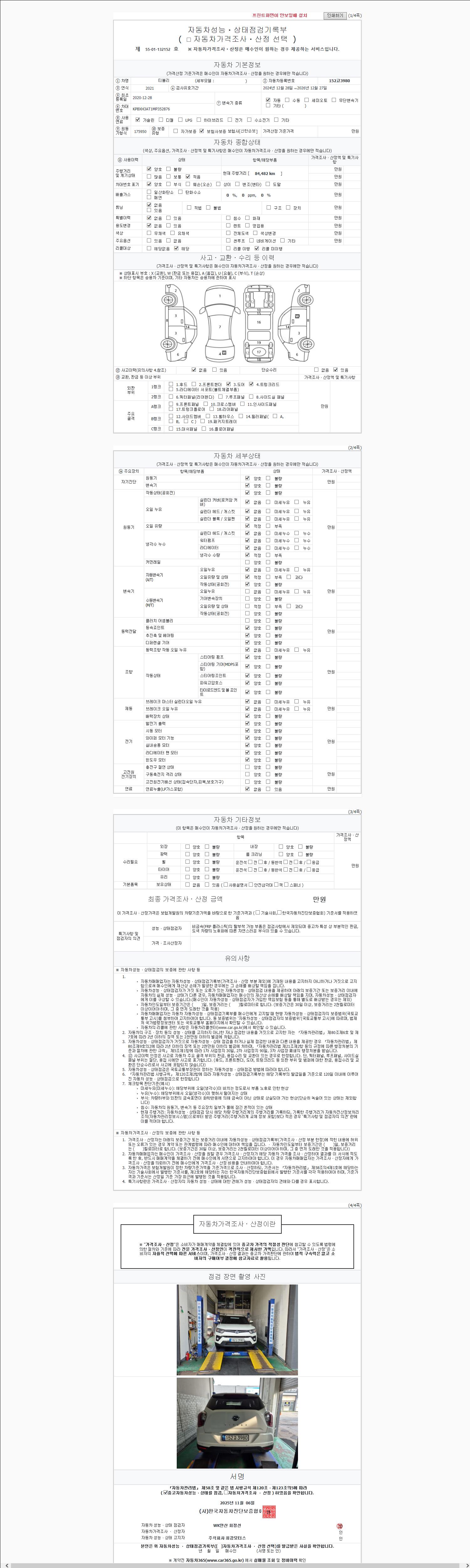 -중고자동차 매매업자를 통해 차량을 구입하실 경우 반드시 "중고자동차 성능, 상태점검 기록부"를 교뷰 받으셔야 하며, 매매업자는 반드시 의무 교부 하여야 압니다.