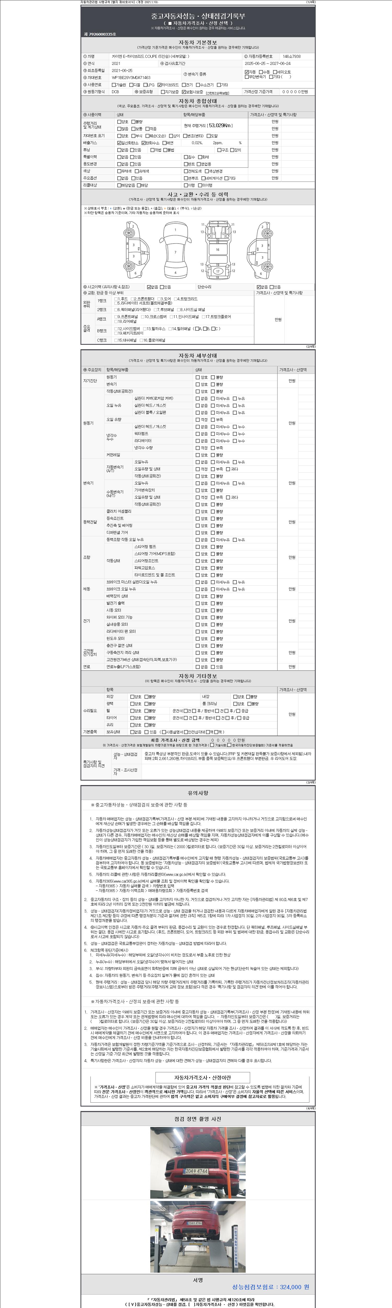 - 사고유무 : 성능기록부 참조